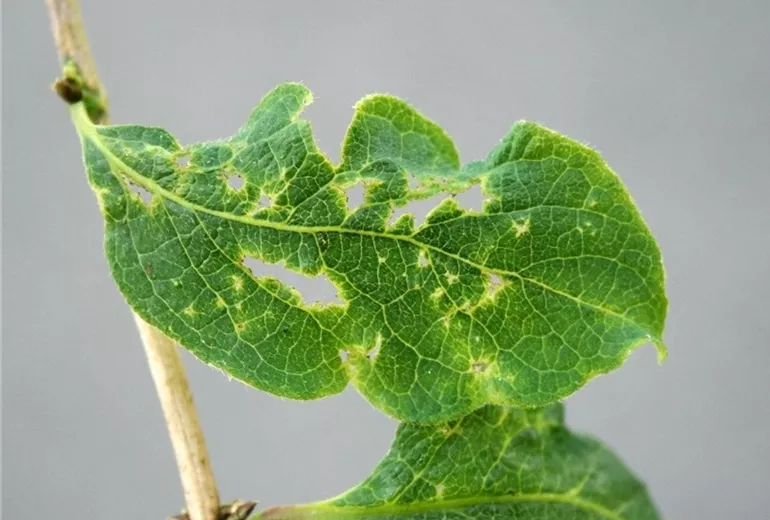 Die beschriebenen Schäden werden durch Wanzen hervorgerufen, die bevorzugt junge noch nicht entfaltete Blätter anstechen und den Pflanzensaft saugen. An den Anstichstellen stirbt das Blattgewebe ab. Beim späteren Streckungswachstum des Blattes wachsen diese abgestorbenen Blattpartien nicht mit. Es bilden sich die auffälligen Löcher.