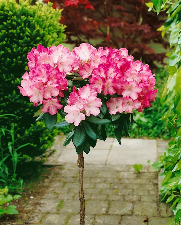 Der Yaku-Rhododendron 'Fantastica', Stamm setzt schöne Akzente gemeinsam mit: