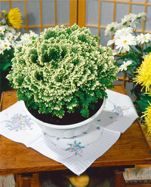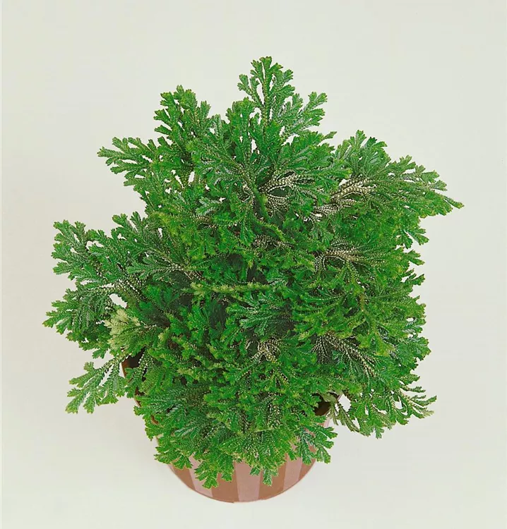 Hoher Blattschmuckwert. Die immergrünen Blätter des Moosfarns sind smaragdgrün, gefiedert.