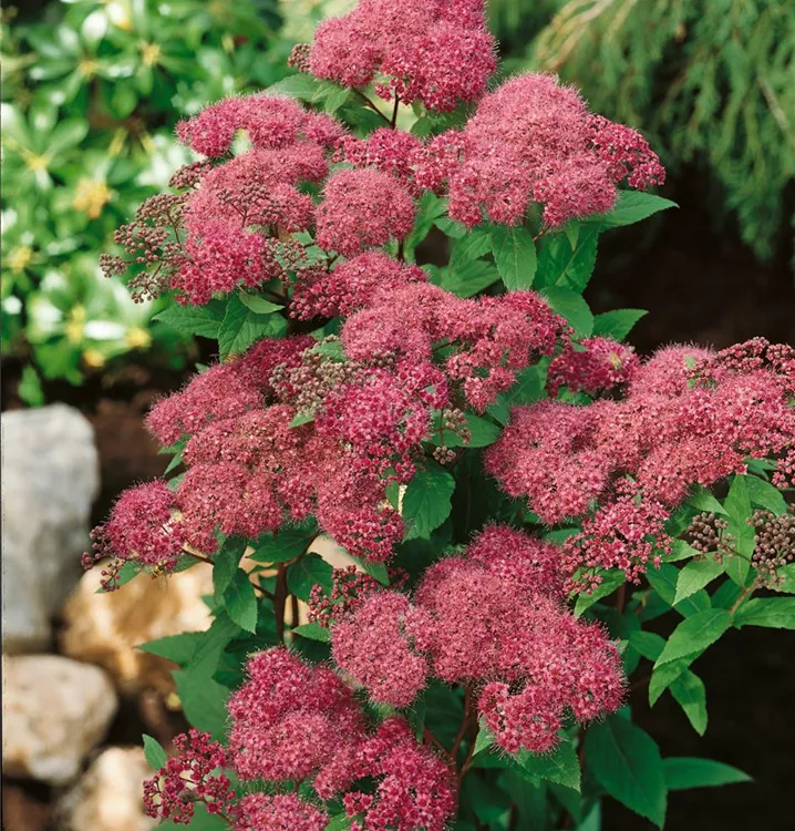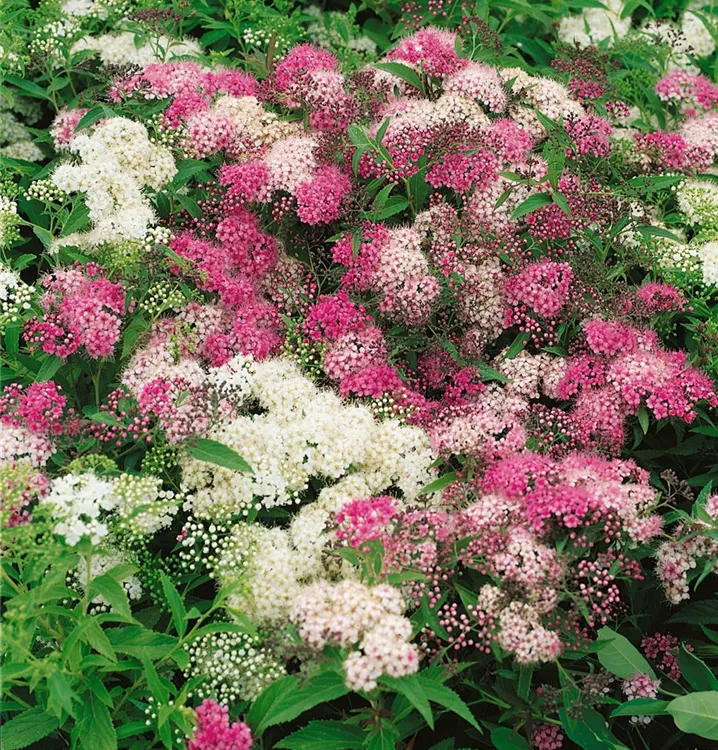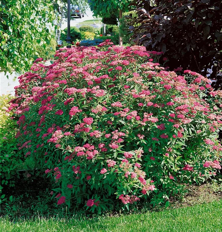 Die Sommerspiere (Spiraea japonica) ein kompakter Kleinstrauch, der, je nach Sorte, Blüten in verschiedenen Farben hervorbringt. An einem sonnigen bis halbschattigen Standort mit durchlässigem, nährstoffreichem Boden erreicht sie gewöhnlich eine Höhe von ca. 60 cm und wird ca. 1 m breit.