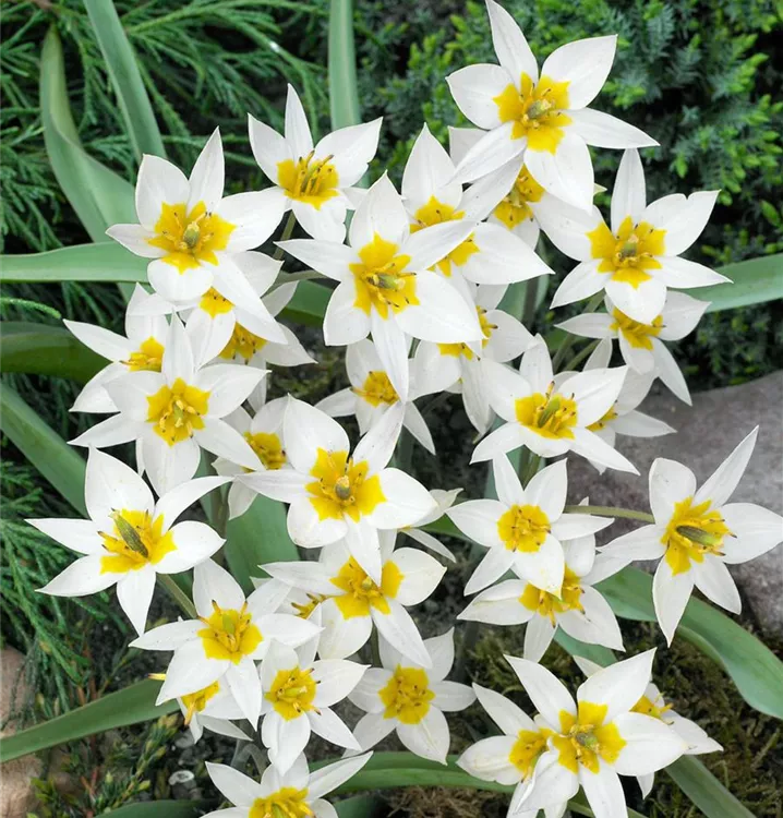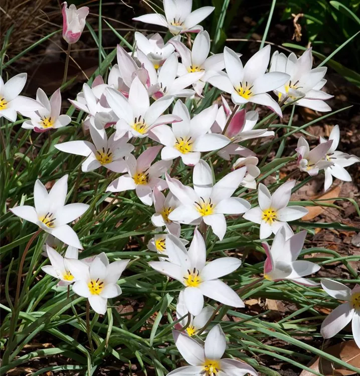 Die Turkestan-Tulpe (Tulipa turkestanica) ist eine pflegeleichte Pflanze, die weiß blüht. Die Blüten verströmen einen angenehmen Duft und erscheinen von März bis April. Bevorzugt wird ein sonniger Standort.