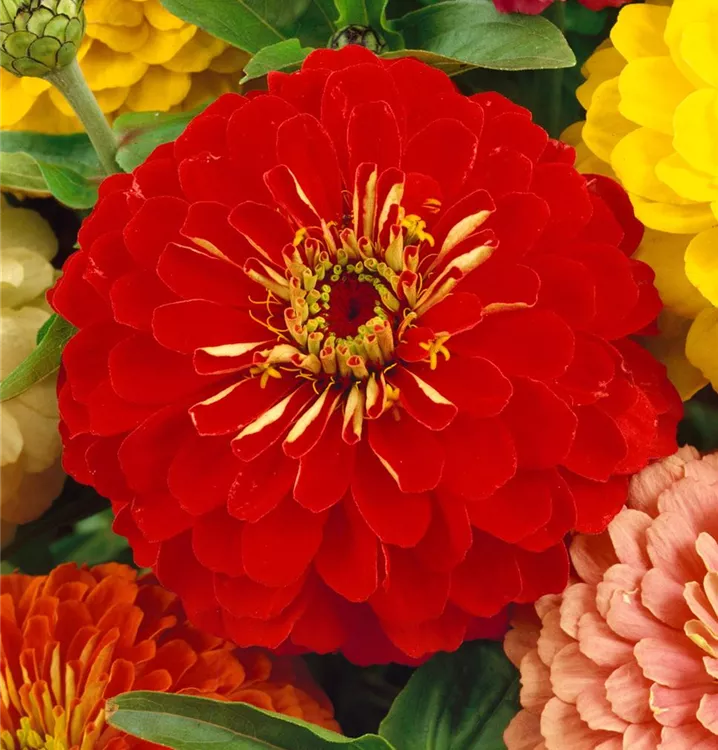 Zinnia elegans bildet während der gesamten Saison zahlreiche bunte Blüten.