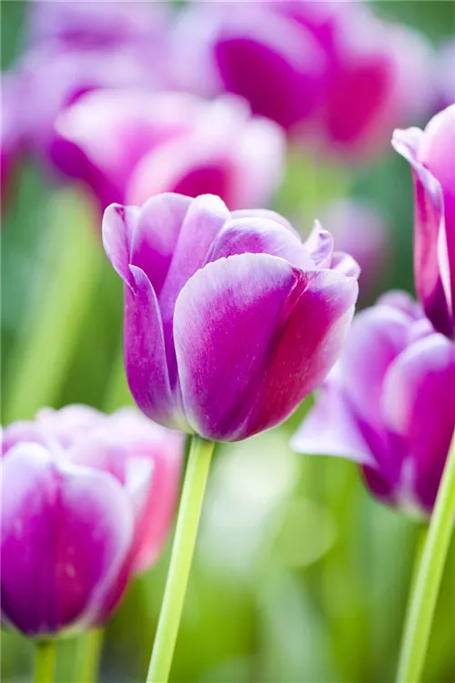 Die Tulpe (Tulipa) ist eine Zwiebelpflanze mit ansehnlichen, bunten, angenehm duftenden Blüten, die von April bis Mai erscheinen. Bevorzugt wird ein durchlässiger, lockerer, nährstoffreicher Boden in sonniger Lage. Die schlanke Staude erreicht gewöhnlich eine Höhe von 30 - 50 cm und wird bis zu 20 cm breit.